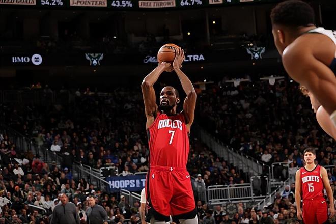 在此前的一场NBA常规赛中,休斯顿火箭以122比115战胜了主场作战的密尔沃基雄鹿。本场比赛后,在最近7场比赛中拿下了6场胜利的火箭的战绩提升到了6胜3负,排名也是上升到了西部第5位;而在最近3场比赛中输掉了2场的雄鹿的战绩已经下滑到了6胜4负,排名也是跌到了东部第7位。本场比赛后,火箭的锋线球星凯文-杜兰特(Kevin Durant)接受了记者的采访,他也在采访中谈到了在比赛中表现不错的后场新星里德-谢泼德(Reed Sheppard)的相关情况。